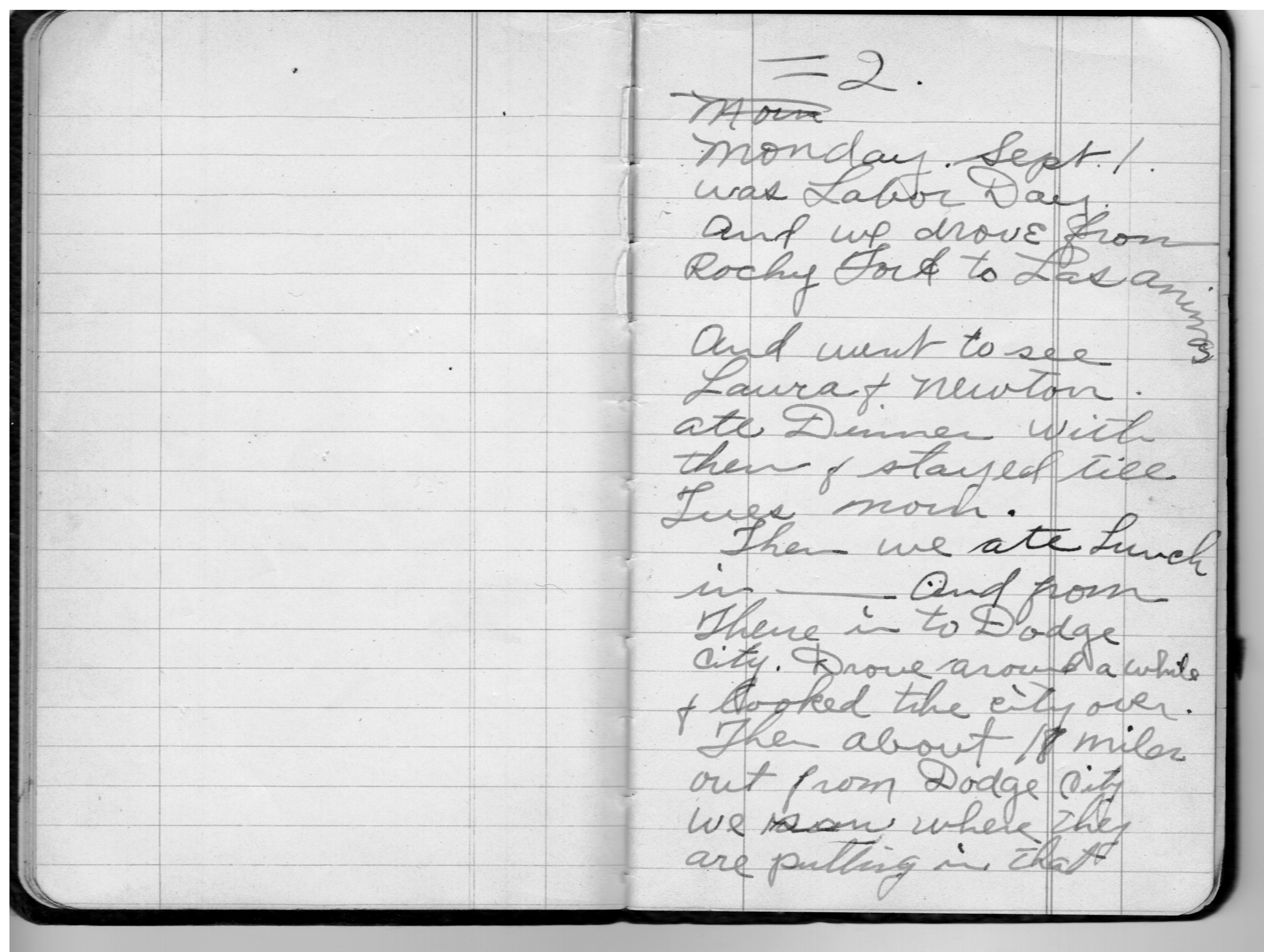 Then we ate lunch in __ and from there into Dodge City. Drove around a while & looked the city over. Then about 18 miles out from Dodge City we saw where they are putting in that