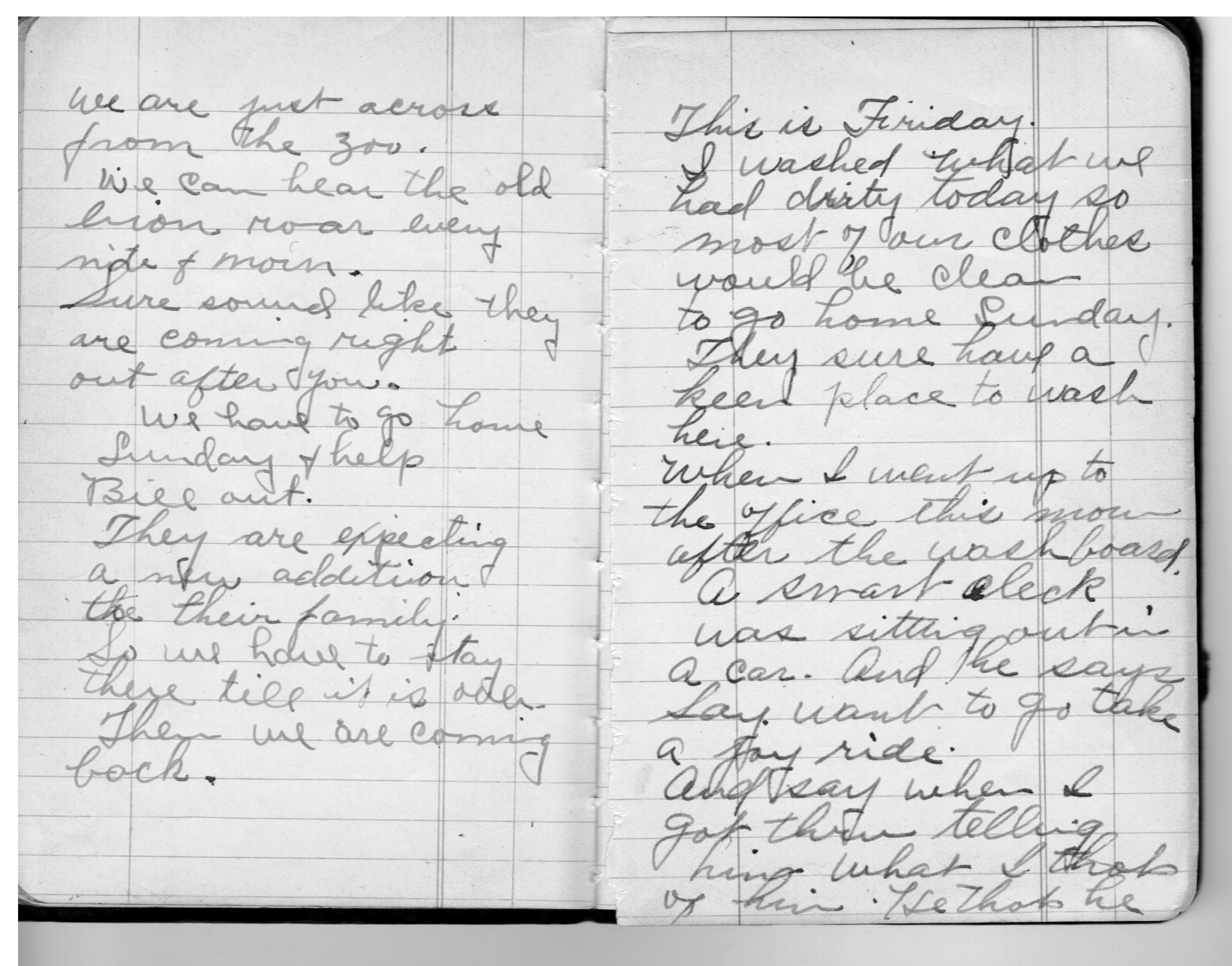 Is just across from the park. Can hear the Lions roar. Haven’t went over to see the animals yet. but figure on doing so tomorrow. Have a real nice cabin to live in. Have to pay $8.00 a week.