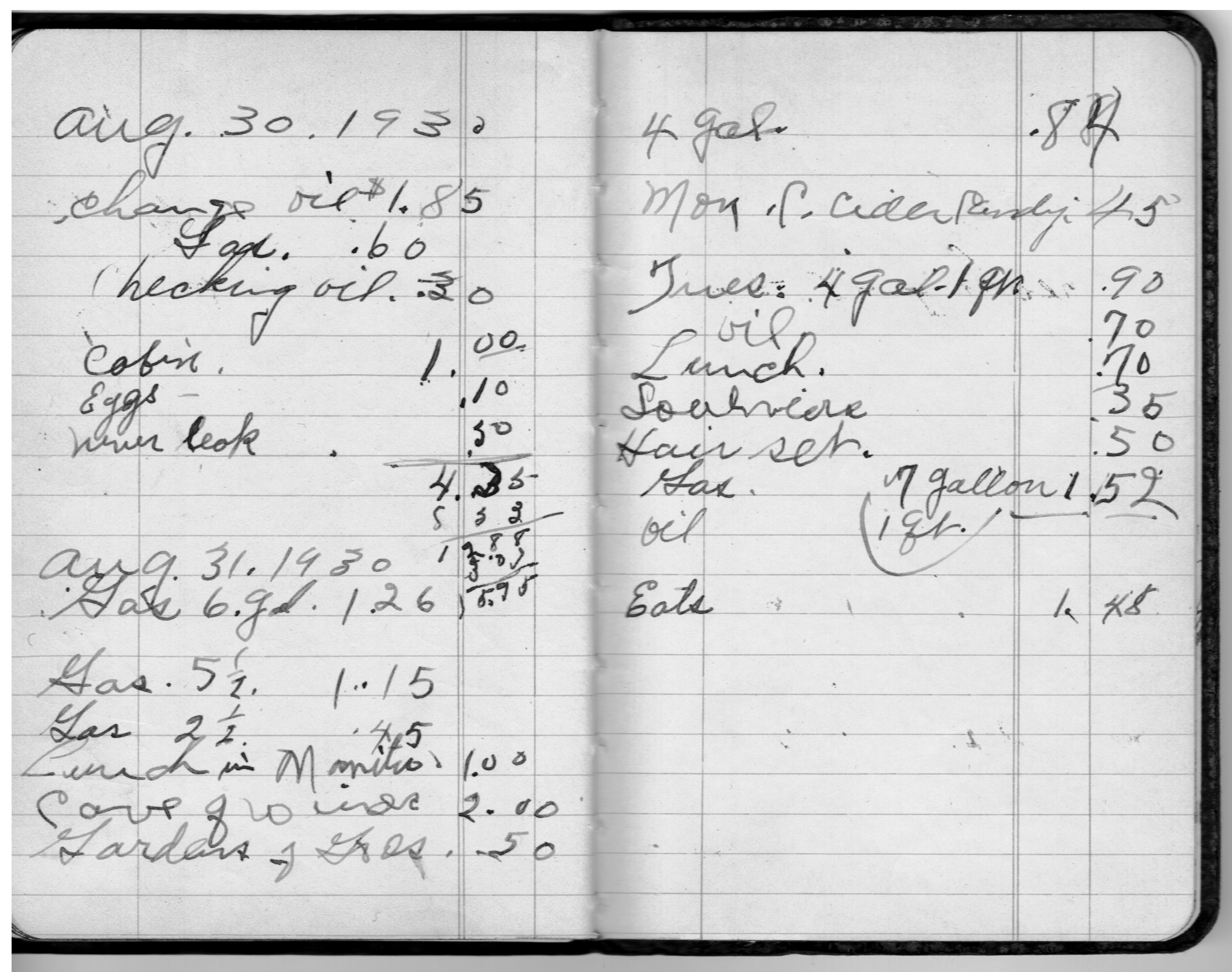 This is a journal kept by Lowie Squire during a vacation taken in 1930.